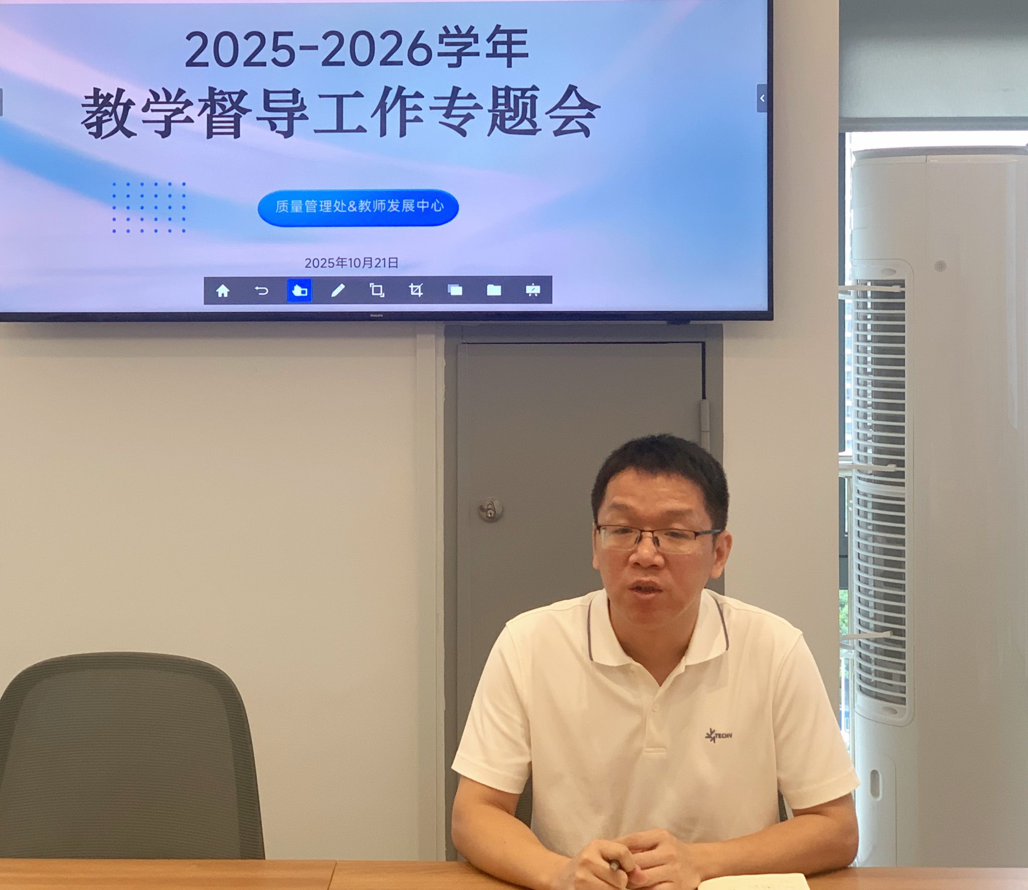 为持续强化教学质量监控,提升教育教学水平,我校于2025年10月21日上午10:30在综合楼1101会议室组织召开了2025-2026学年第一学期教学督导工作专题会议。校长助理吴辉煌、各二级学院领导、全体校级兼职督导以及质量管理处负责人参加了本次会议。